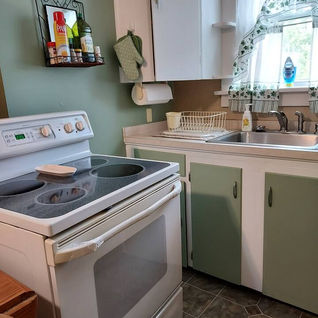 Aunt Rose’s Place Duplex 1-bedroom Upper unit features a 45” smart TV with DirecTV in the living room and a 35” smart TV in the bedroom, and a well-stocked kitchen, and full-bath with linens and soaps. This cozy apartment sleeps up to 3 adults in a Queen 12" foam bed, Love Seat with a pullout full bed, and a double reclining loveseat. The laundry-center is in suet.